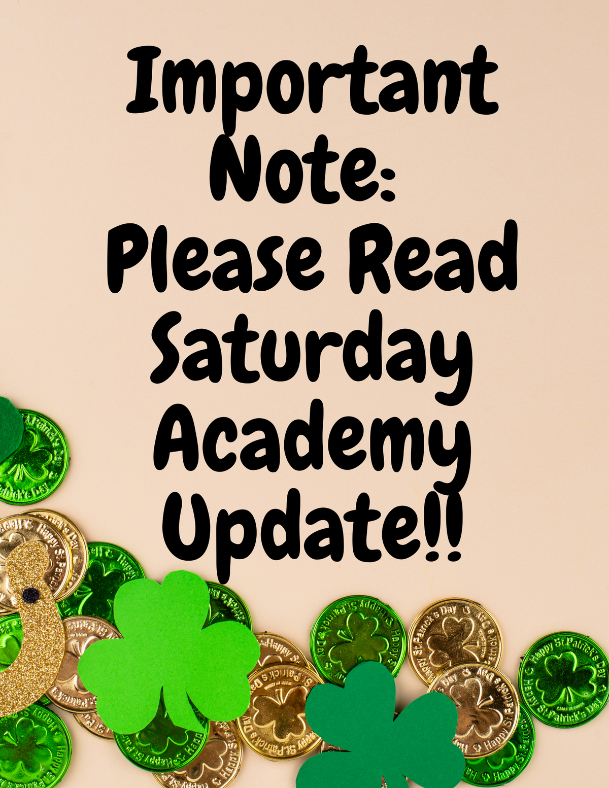 Important Date Changes to Saturday Academy Starting This Saturday!